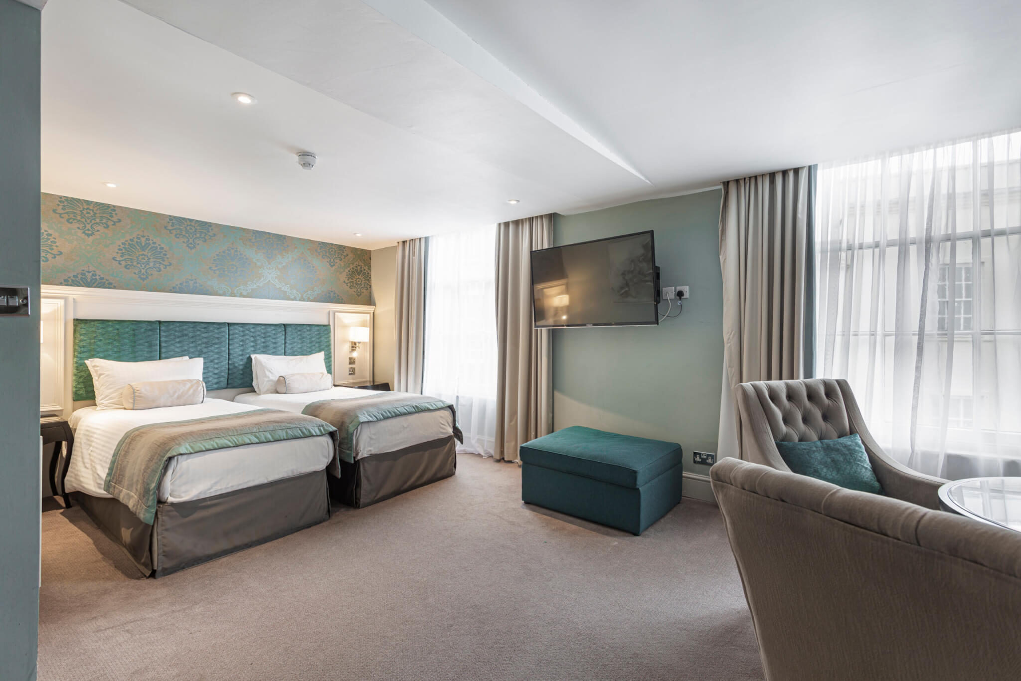 Premium Rooms offer tranquility with premium linens, soft pillows and comfortable mattresses. All rooms offer high speed wifi, H2K of Harrogate botanicals, hairdryer, smart TV, Roberts radio, premium teas and coffee in room, premium biscuits and British spring water
